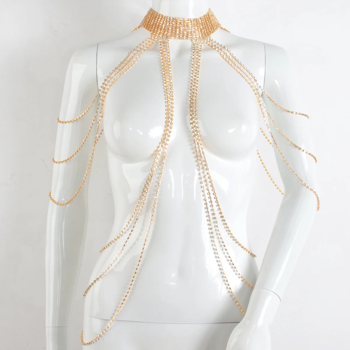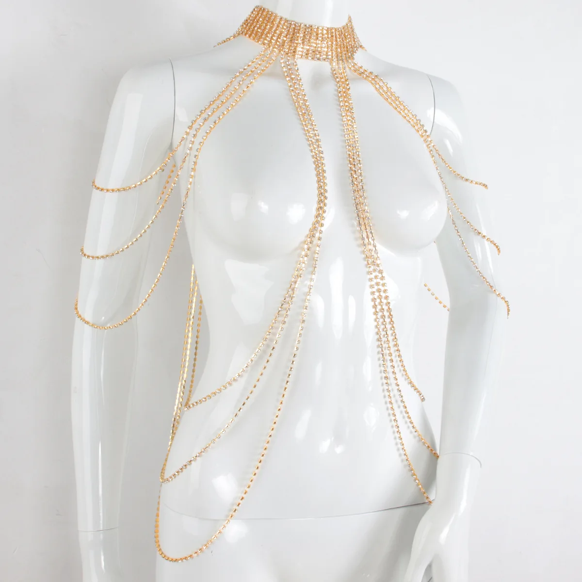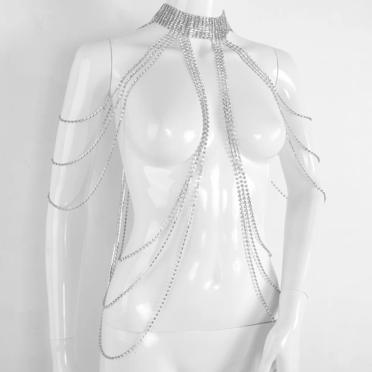 Elegant Hanging Neck Style Light Luxury Style Multi-layer Rhinestone Chest Chain